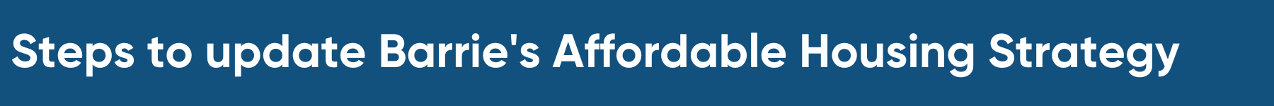 Staff presented policy options developed through step one to the Affordability Committee on September 27, 2023 and consulted on these policy options with the Technical Advisory Committee. Now, staff will host online engagement (fall 2023) and an Open House (November 9, 2023) to discuss the action items derived from these policy options and understand more about their importance to you and Barrie as a whole. - Updating the Existing Strategy (upcoming)