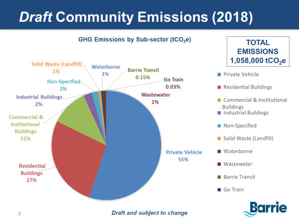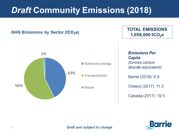 In 2019, Barrie City Council declared a climate emergency and directed city staff to create a Climate Change Mitigation Plan to reach Barrie’s corporate GHG emissions target of net-zero by the year 2050.