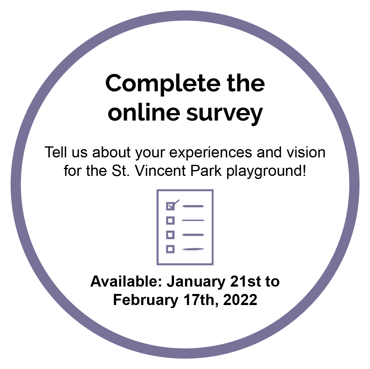 What is your vision for the St. Vincent Park playground revitalization? Your ideas and preferences will be used to develop three design concepts.