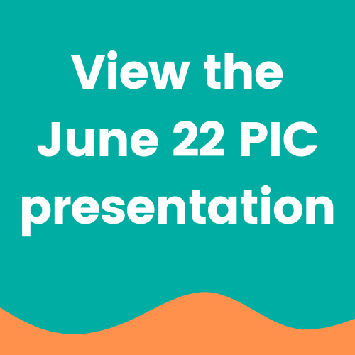 A second virtual PIC meeting and presentation took place on Wednesday, June 22, 2022. These meetings were open to all members of the public and there were two time options available.